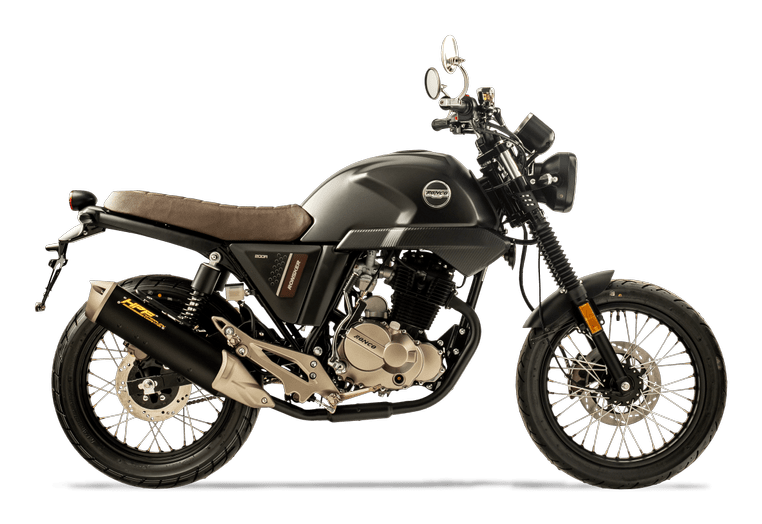 La Ronskers 200R toma como base para su diseño las clásicas motos de los años setenta, combinando líneas afiladas, un moderno tablero digital, tapas con acabados que simulan fibra de carbono y un escape de última generación, que le permite alcanzar la certificación Euro, échale un vistazo.